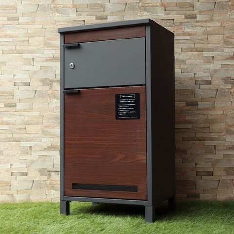 MOJYU 【Maisie(メイジー)】宅配ボックス付ポスト PBX-057 ダークグレー/ブラウン木目【プラザセレクト】