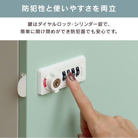 ・セキュリティ:正面扉は、ダイヤルロックとシリンダー錠(ダイヤル解錠番号が分からなくなった際の緊急用)でドアの開閉が可能です。