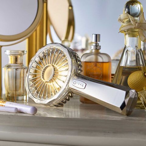 ハンディファンです。これまでにない、抑揚のある曲線とクリスタルカットのコンビネーションは、