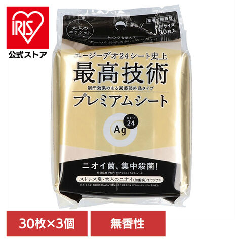 【3個】エージーデオ24 プレミアム デオドラント シャワーシート(無香性)30枚 10440