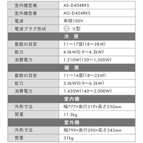 【工事無し】富士通ゼネラル ルームエアコン ノクリア Dシリーズ 4.0kW 主に14畳用/100V AS-D404RKS 【プラザセレクト】