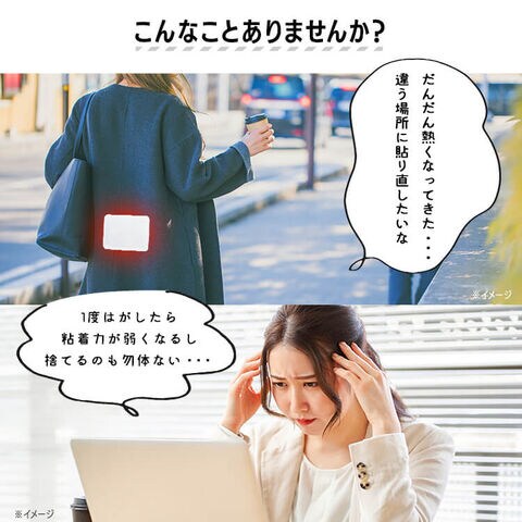 通勤時は背中に、オフィスではお腹や肩など貼る箇所を変えられます。