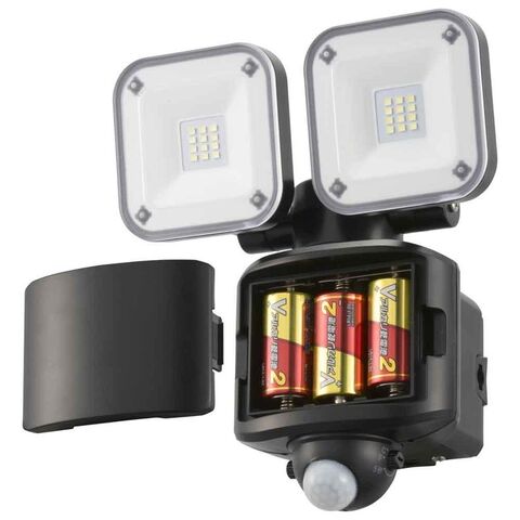 オーム電機 乾電池+ソーラー式防犯センサーライト2灯1200lm LS-S120W2 【プラザセレクト】