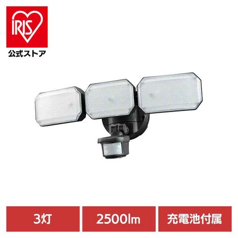 オーム電機 充電池式防犯センサーライト3灯2500lm(充電池付属) LS-B313 【プラザセレクト】