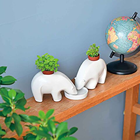 おしゃれなシロクマが水を飲んでハーブが育ちます。