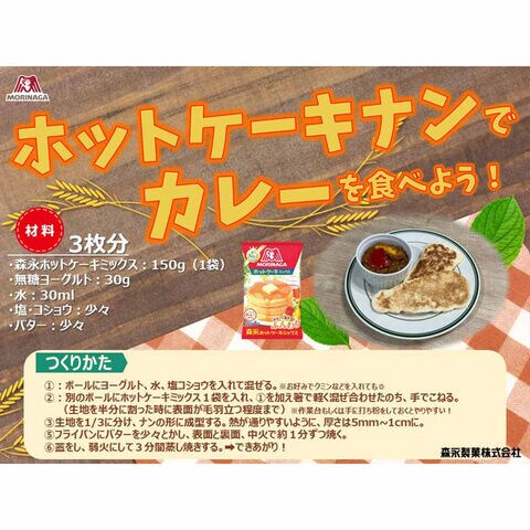 * ミックス150g・卵Mサイズ・牛乳100mlで3枚焼く場合( 日本食品標準成分表2020 鶏卵、普通牛乳より算出)
