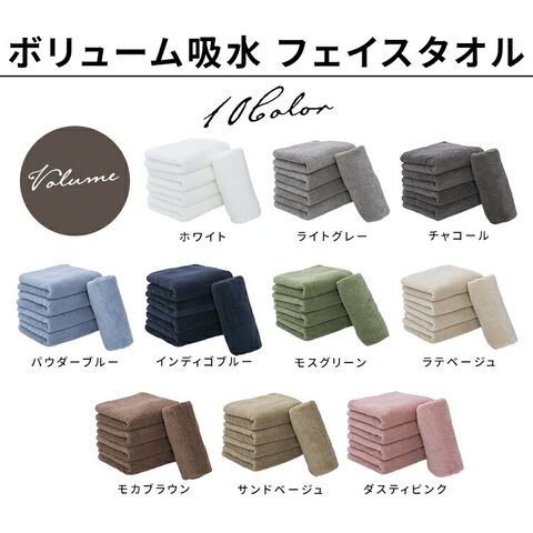 ボリューム吸水 10枚セット ホワイトタオル フェイスタオル 吸水 軽量 速乾 ボリューム マイクロファイバー パイル ふわふわ 手拭き たおる 無地 まとめ買い
