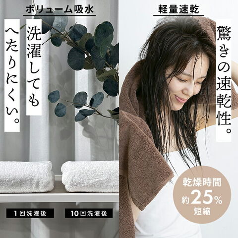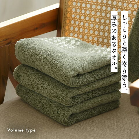 ふんわりとしたボリューム感と、優れた吸水性を兼ね備えたタオル。