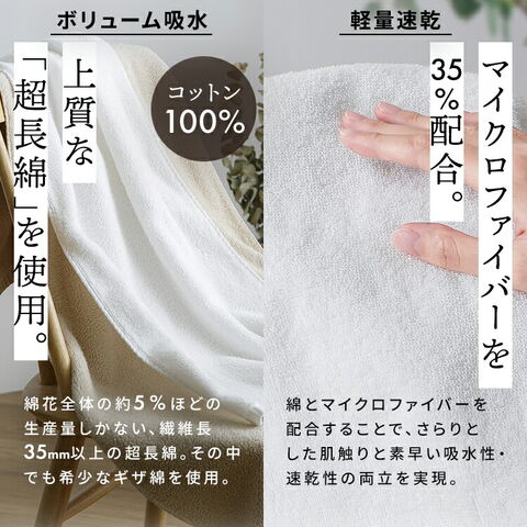 綿とポリエステルを混合させるているから、吸水性を保ちながらも速乾性を実現。