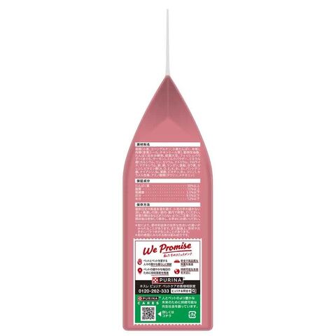 穀類(小麦、コーングルテン、小麦たんぱく、米 等)、肉類(家禽ミール、チキンミール 等)、動物性油脂、たんぱく加水分解物、脱脂大豆、フィッシュパウダー(まぐろ、サーモン)、ミルクパウダー、ミネラル類(カルシウム、リン、カリウム、ナトリウム、クロライド、マグネシウム、鉄、銅、マンガン、亜鉛、ヨウ素、セレン)、ビタミン類(A、D、E、K、B1、B2、パントテン酸、ナイアシン、B6、葉酸、ビオチン、B12、コリン)、カラメル色素、アミノ酸類(タウリン、メチオニン)
