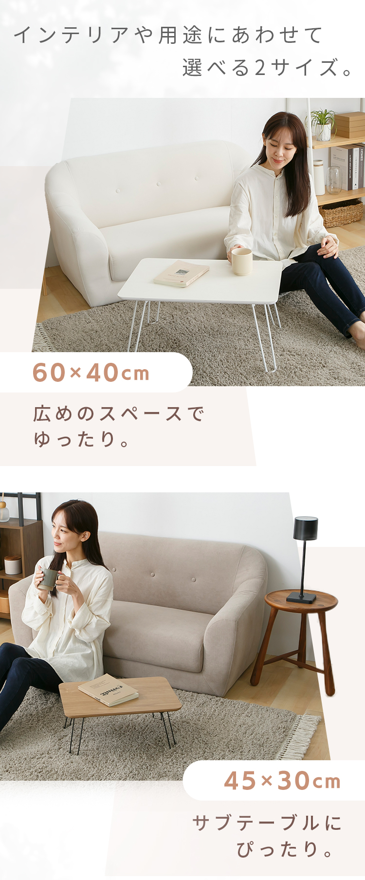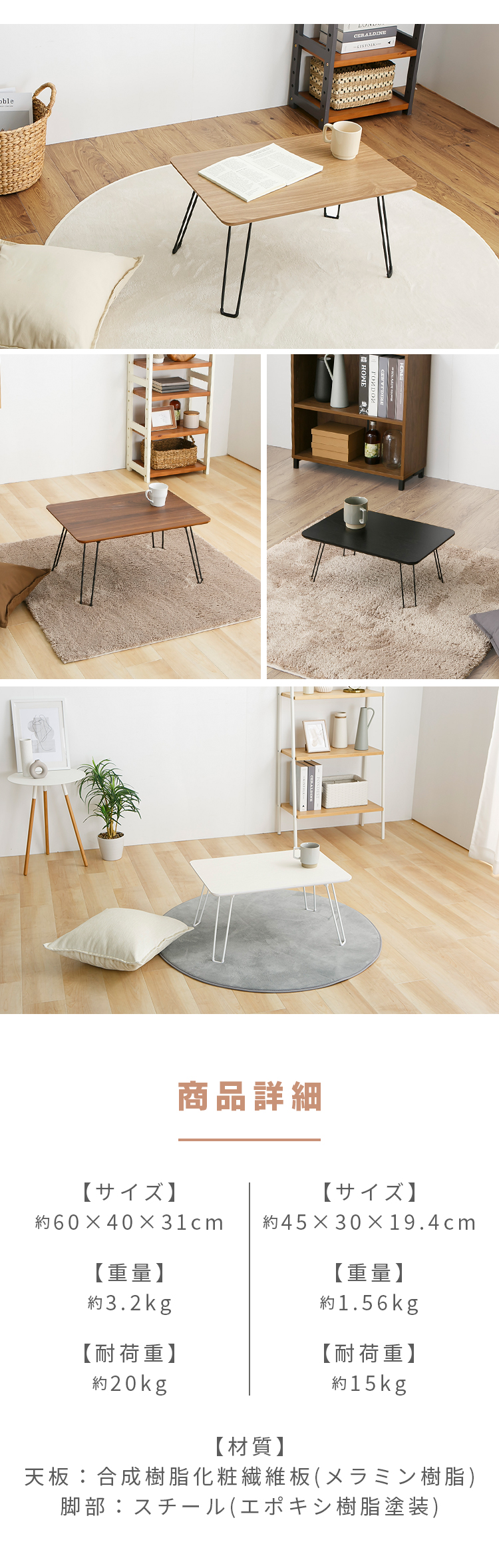 ちょっとした作業やティータイムにもも大活躍。使わないときは折りたたんで収納できるので、ワンルームや一人暮らしのお部屋にもぴったり。●商品サイズ(cm)