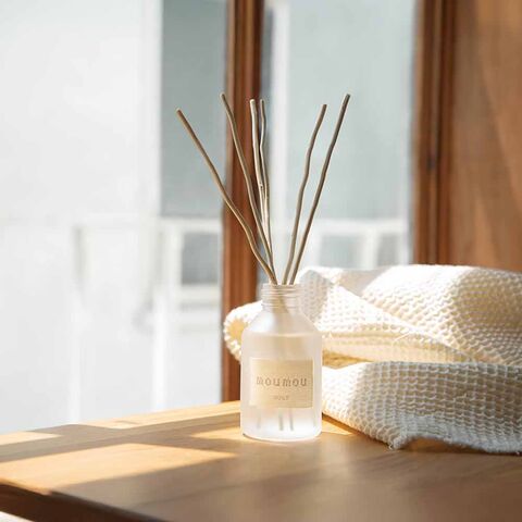 日常に寄り添うファブリックのように心地よく過ごしてもらいたい、そんな想いが詰まったブランドmoumouブランドのリードディフューザーです。