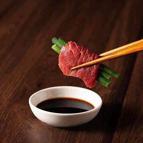 馬刺しのたれ:しょうゆ(国内製造)、植物性蛋白加水分解物(大豆を含む)、糖類(砂糖、砂糖混合異性化液糖)、食塩、かつお節エキス(小麦・さばを含む)/カラメル色素、調味料(アミノ酸等)、甘味料(ステビア、カンゾウ)