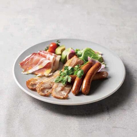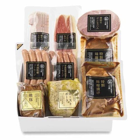 日本の米育ち三元豚平田牧場ソーセージ豚肉、食塩、砂糖、たん白加水分解物、酵母エキス、香辛料/香辛料抽出物、リン酸塩(Na、K)、トレハロース、酸化防止剤(ビタミンC)、発色剤(亜硝酸Na)、(一部に小麦・豚肉を含む)日本の米育ち三元豚平田牧場荒挽きソーセージ豚肉、糖類(水あめ、砂糖)、食塩、酵母エキス、たん白加水分解物、香辛料、コンブエキス、カツオエキス、ホタテエキス/トレハロース、香辛料抽出物、リン酸塩(Na、K)、酸化防止剤(ビタミンC)、発色剤(亜硝酸Na)、(一部に小麦・豚肉を含む)日本の米育ち三元豚プロシュート生ハム豚モモ肉、糖類(水あめ、砂糖)、食塩、たん白加水分解物、酵母エキス/香辛料抽出物、酸化防止剤(ビタミンC)、発色剤(硝酸K、亜硝酸Na)、(一部に小麦・豚肉を含む)日本の米育ち三元豚極みベーコンスライス豚バラ肉、食塩、糖類(水あめ、砂糖)、香辛料、ポークエキス、コンブエキス、椎茸エキス、カツオエキス、ホタテエキス、(一部に豚肉を含む)