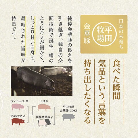 日本の米育ち金華豚ローススライス(冷凍)豚ロース肉(山形県産)日本の米育ち三元豚ローススライス(冷凍)豚ロース肉(国内産)日本の米育ち三元豚バラスライス(冷凍)豚バラ肉(国内産)とびうおだし(小袋)しょうゆ(小麦・大豆を含む)(国内製造)、発酵調味料(液状ぶどう糖、アルコール、米、本みりん、食塩、米麹)、砂糖、とびうお煮干、かつお合わせだし(さばを含む)、酵母エキス、ポークコラーゲンペプチド(豚肉を含む)、しいたけエキスみついしきざみ昆布昆布(北海道産)
