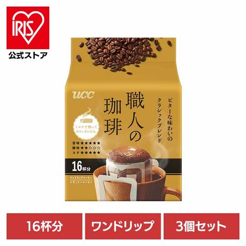 食品 茶葉 コーヒー 国内飲料水コーヒー豆 UCC ドリップコーヒー【3個】UCC 職人の珈琲 ワンドリップコーヒー ビターな味わいのクラシックブレンド 16P 351733 UCC【プラザセレクト】