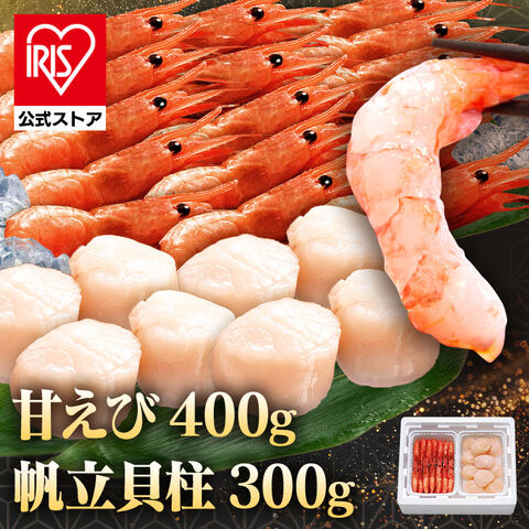 北海道産の帆立貝柱ととろける甘えびのセットです。