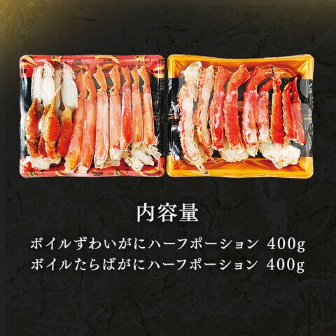 ボイルずわいがにハーフポーション400g、ボイルたらばがにハーフポーション400g
