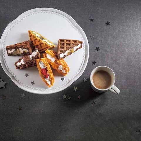 彩りも鮮やかなふんわりワッフル。ふんわり仕上げた香ばしいワッフル生地に、フルーツのジャムやクリームをサンド。味わいも彩りも鮮やかなワッフルを詰合わせました。