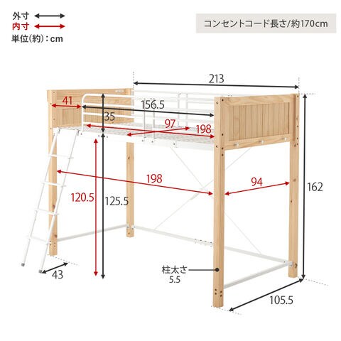 ロフトベッド MB-5158 ナチュラル/ホワイト