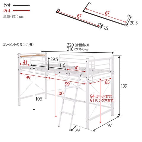 ロフトベッド KH-3690 キャラメルブラウン