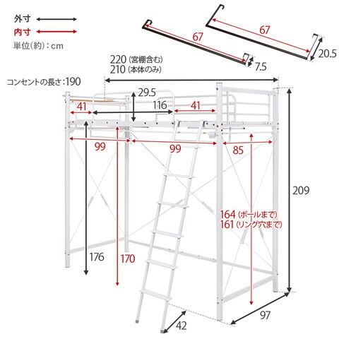 ロフトベッド KH-3693 ホワイト