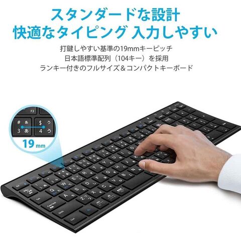 日本人がタイピングしやすい日本語配列のキーボードです。テンキーや方向キーを搭載し、利便性に優れています。数字を頻繁に入力する方に最適です。