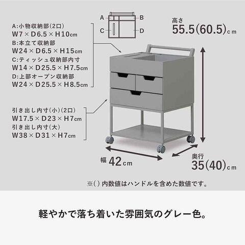 本体外寸:幅約42×奥行約35(取っ手まで40)×高さ約55.5(取っ手まで60.5)