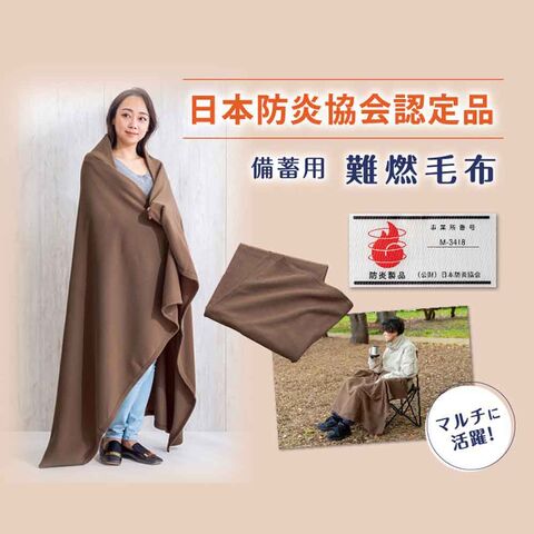 日本防炎協会認定 備蓄用難燃毛布 ブラウン 73-0287