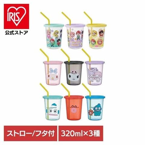 可愛いキャラクターのフタ付きコップ3個セット。