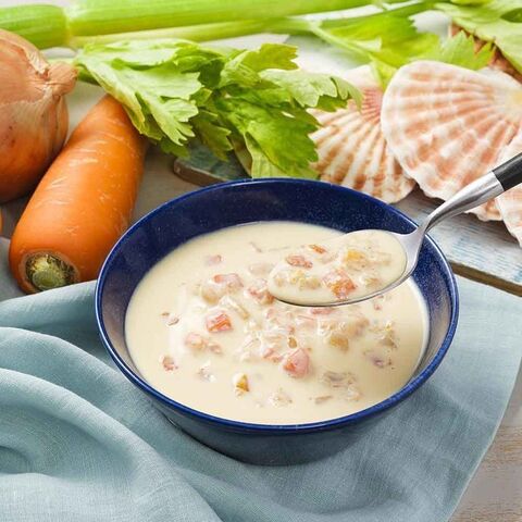 甘みが出るまで炒めた香味野菜・ホワイトルウ・魚介ブイヨンを合わせたスープと、乳製品をバランスよく仕立てました。