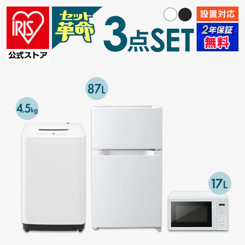 家電セット 3点 冷蔵庫87L 洗濯機4.5kg 単機能レンジ【ホワイト】【setti】 【安心延長保証対象】【安心延長保証対象】