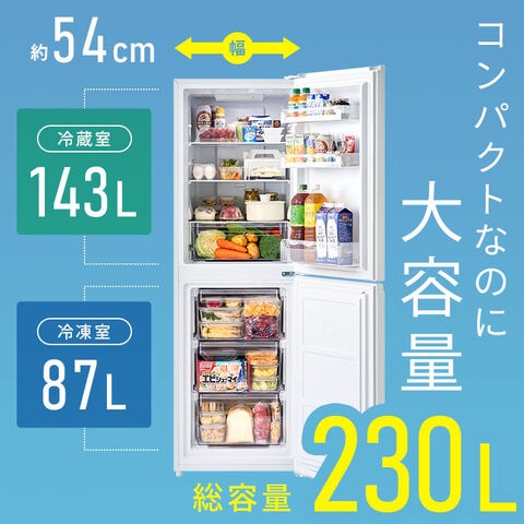 “収納力×スリム設計”冷凍冷蔵庫[全定格内容積:230L/幅約54cm]。