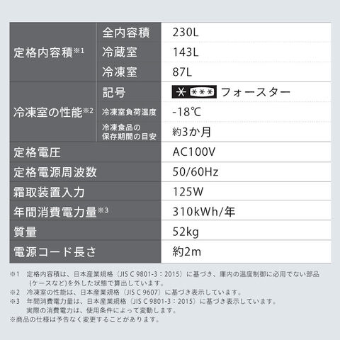 ※2:冷凍室の性能は、日本産業規格(JIS C 9607)に基づき表示しています。