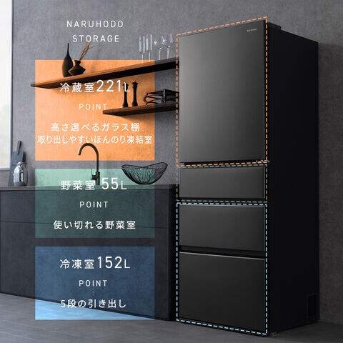 しまL5段冷凍室でたっぷり152L、買いだめ・作り置きも安心。