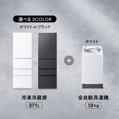 【設置サービス対象】 家電セット 2点 冷蔵庫 371L 冷凍冷蔵庫 大容量 洗濯機 10kg 縦型 全自動洗濯機 大凍量 IRSN-37A OSH ITW-100A03 アイリスオーヤマ 安心延長保証対象 ブラック 【HS】