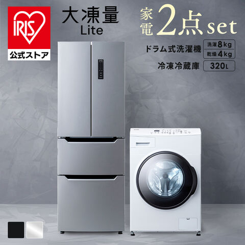 【設置サービス対象】 家電セット 2点 冷蔵庫 301L 二人暮らし 冷凍冷蔵庫 洗濯機 8kg ドラム式 洗濯乾燥機 大凍量 アイリスオーヤマ 安心延長保証対象 新生活 引っ越し ブラック 【HS】
