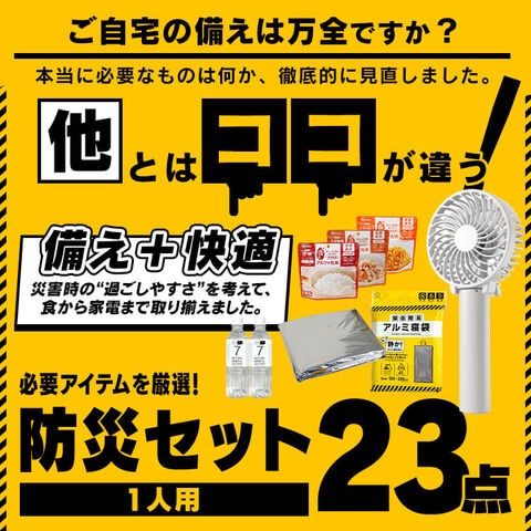 防災グッズ セット 23点 防災セット 防災 防災セット 1人用 防災 避難グッズ ハンディファン カイロ 保存水 非常食 防災用品 非常用トイレ 一人用 備蓄 災害 避難用 防災グッズ 停電