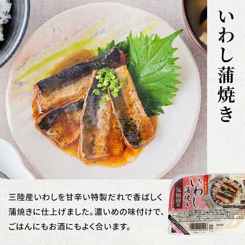 【いわし蒲焼】いわし(国産)、糖類(砂糖、黒糖みつ)、しょうゆ/増粘剤(加工でん粉)、(一部に小麦・大豆を含む)【かつおとたけのこの柔らか煮】かつお(宮城県)、たけのこ、糖類(砂糖、黒糖みつ)、しょうゆ、清酒、みりん、生姜、還元水あめ、食塩、かつおぶしエキス、昆布エキス/増粘剤(加工でん粉、増粘多糖類)、(一部に小麦・大豆を含む)