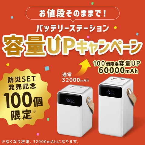 バッテリーステーション+断水対策セット+選べる美味しい長期保存食イザメシシリーズのセット。