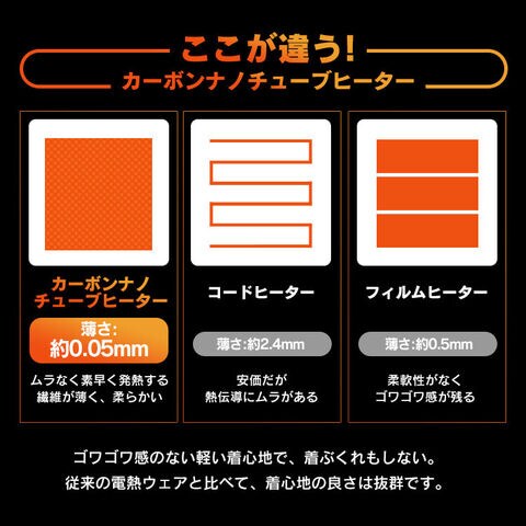 シート状のヒーターのため、着心地を損なわずに着用できます。
