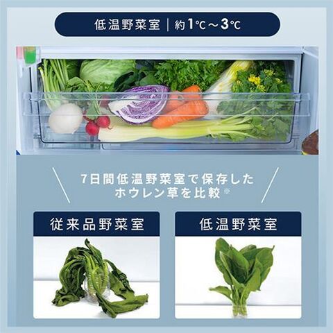 ・冷蔵室:266L→低温野菜室/チルド室/野菜室。