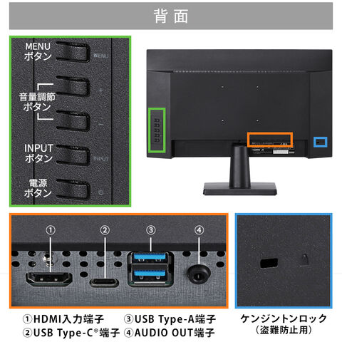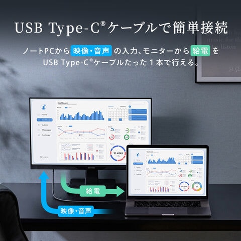 ノートPCから映像・音声の入力、モニターから給電をUSB Type-Cケーブルたった1本で行えます。