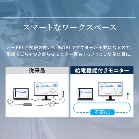 PC側のACアダプターが不要になるので、モニター裏もすっきり。