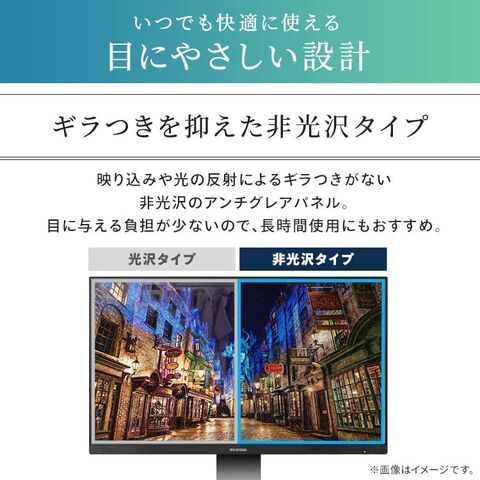 高視野角パネル搭載。角度を変えてもほとんど変わらない色再現。繊細な色彩が臨場感を与えます。