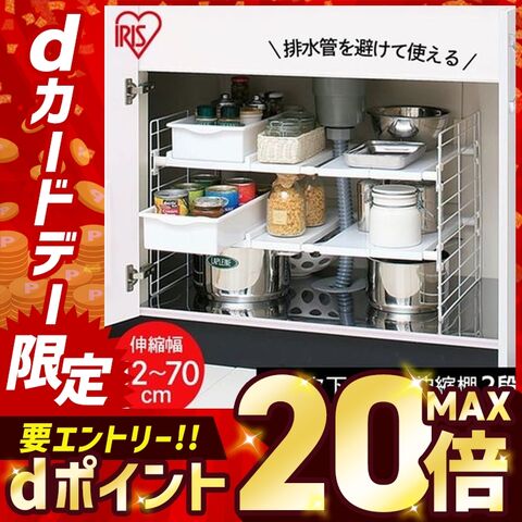 シンク下マルチ伸縮棚 2段 UMD-2V ホワイト [キッチン]