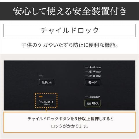 1200W(ターボ):リビングやお部屋を早く暖めたい時におすすめ。