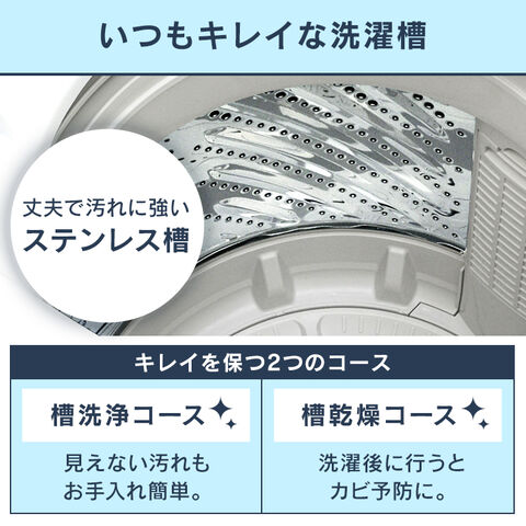 黒カビが発生しにくいステンレス槽を採用。