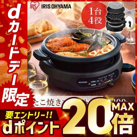 ホットプレート 焼肉プレート グリル鍋 3枚プレート アイリスオーヤマ 焼肉 料理 パエリア 餃子 IGU-B3-B ブラック 【安心延長保証対象】