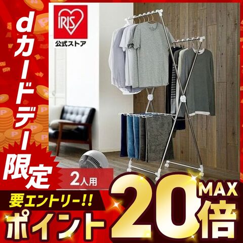 高さ違いの2段構造で風が奥まで抜けやすく、後ろの洗濯物にもしっかり風が当たります。